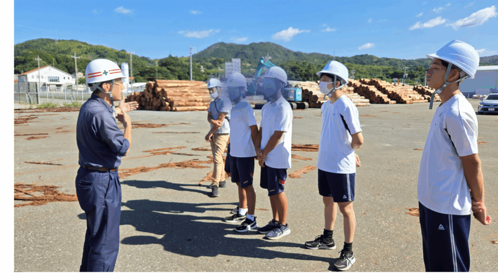 2日目は伸和産業が木材を納めている浜田市島根合板株式会社と浜田港運へ(横田中学校の職場体験学習の生徒さんと一緒に)行きました。