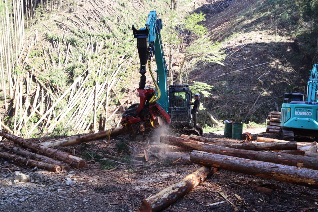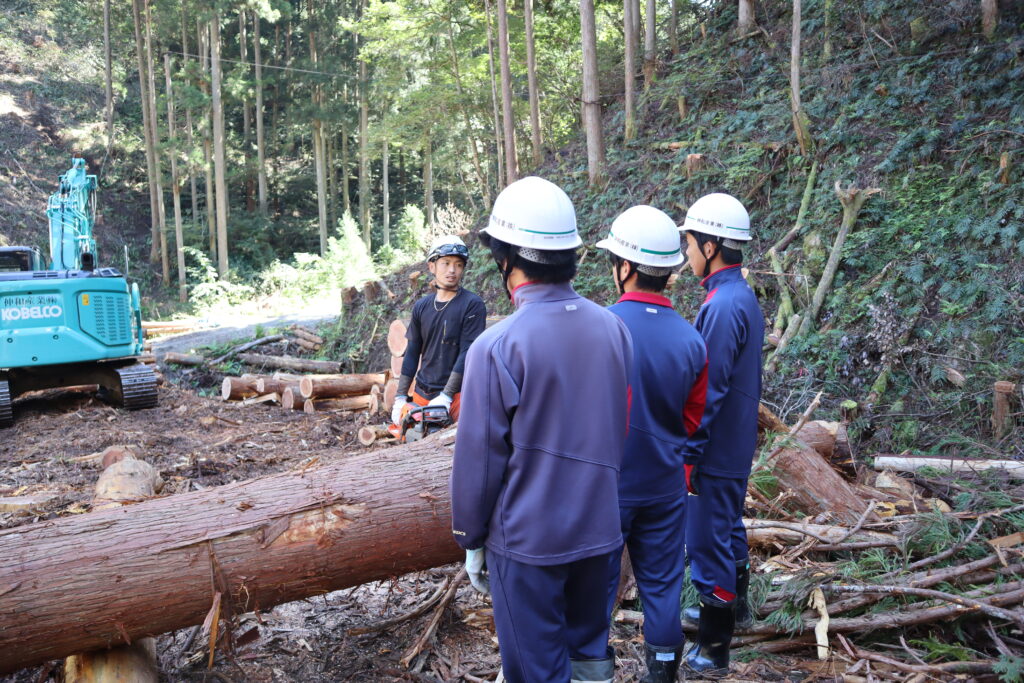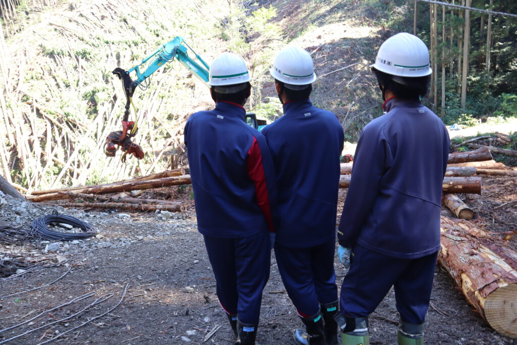 最終日には、山現場で操作指導を手伝ってもらいながら、一人ずつ重機操作体験もしました。また実際に働く人にそれぞれ質問をして、答えてもらいました。